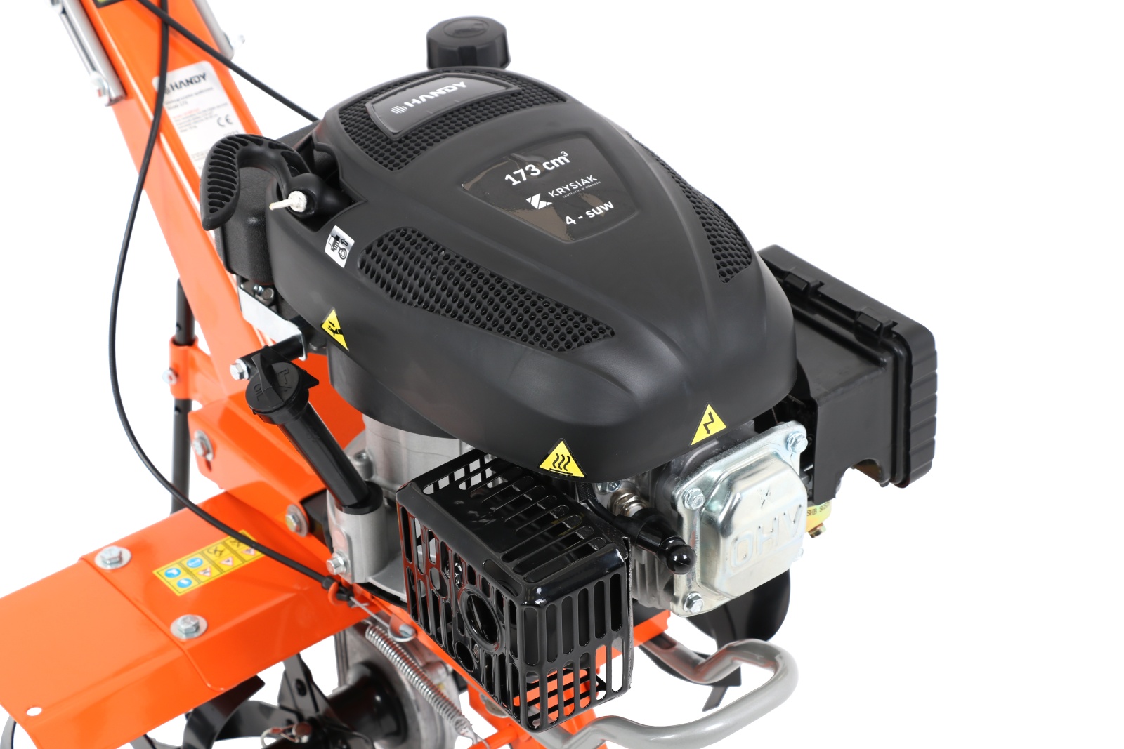 Glebogryzarka spalinowa Handy SG60-173 pozwoli Ci polepszyć jakość gleby, a także Twoich upraw nawet na niewielkich terenach. Jest to sprzęt dostosowany parametrami do właśnie takiego, amatorskiego wykorzystania. Działa na silniku OHV o pojemności 173 cm3. Szerokość robocza pracy wnosi 36 lub 60 cm, a maksymalna głębokość to 20 cm. Urządzenie ma też możliwość wykorzystania jednego biegu do przodu. Glebogryzarka spalinowa Handy SG60-173 waży zaledwie 36 kg, co czyni ją jedną z lżejszych i bardziej zwrotnych glebogryzarek dostępnych na rynku. Nie odbiera to jednak jej skuteczności, którą już teraz możesz wykorzystać na swojej działce lub w ogródku. Zapraszamy po więcej informacji do dostępnej do pobrania instrukcji obsługi, a także zachęcamy do kontaktu z nami!
