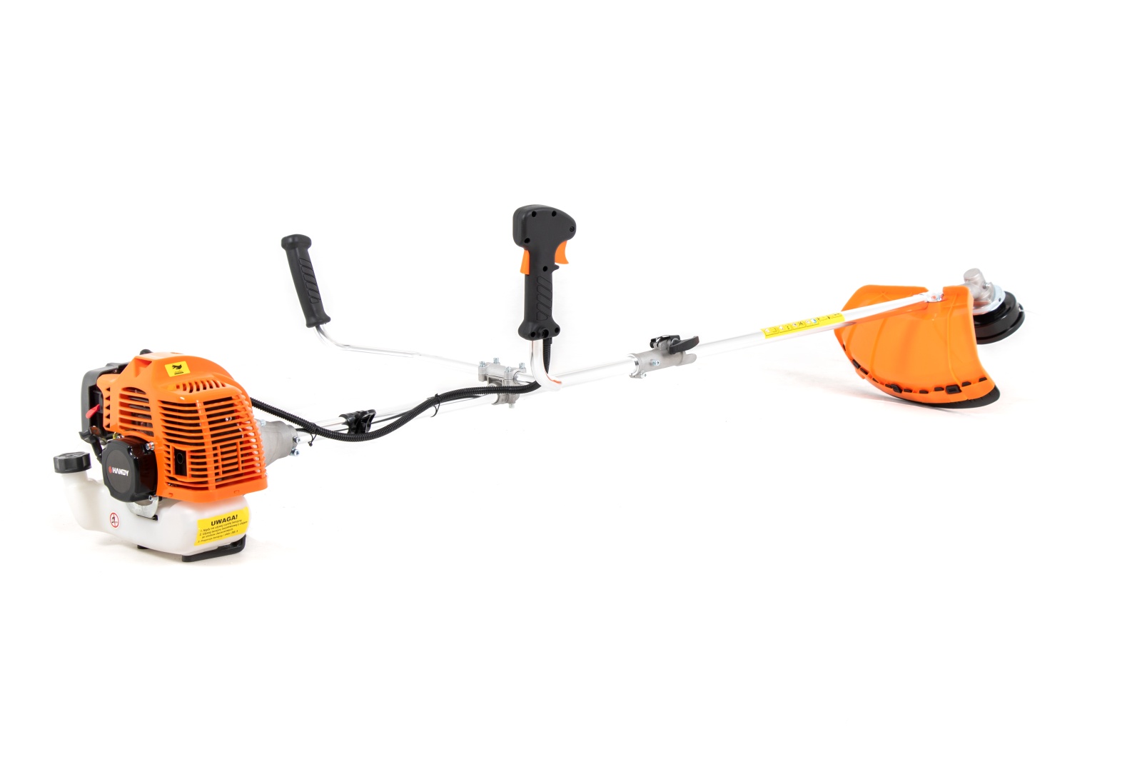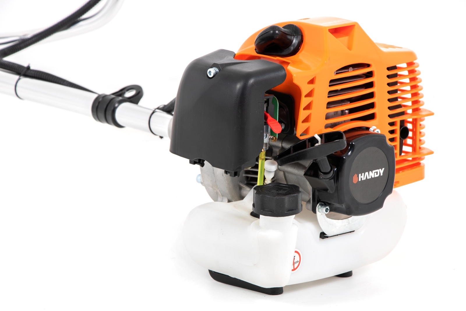 Kosa spalinowa Handy TMK52 wyposażona jest w wydajny dwusuwowy silnik o pojemności 52 cm3. Szerokość robocza tarczy tnącej wynosi 25,5 cm, natomiast głowicy żyłkowej – 45 cm. W komplecie oprócz tego producent oferuje pojemnik do mieszanki, szelki i klucz do świecy. Praktyczny uchwyt wyposażony w system antywibracyjny sprawia, że sprzęt lepiej leży w dłoniach użytkownika i nie sprawia problemów podczas pracy. Warto podkreślić również stosunkowo niewielką wagę kosy spalinowej Handy TMK52, która wynosi zaledwie niecałe 8 kg, ponieważ to również ma bardzo duży wpływ na poprawę komfortu użytkowania urządzenia. Za jakość sprzętu odpowiada doskonale znana klientom naszego sklepu internetowego marka Handy, specjalizująca się w kompleksowej produkcji wyposażenia ogrodowego zarówno dla amatorów, jak też bardziej zaawansowanych użytkowników.