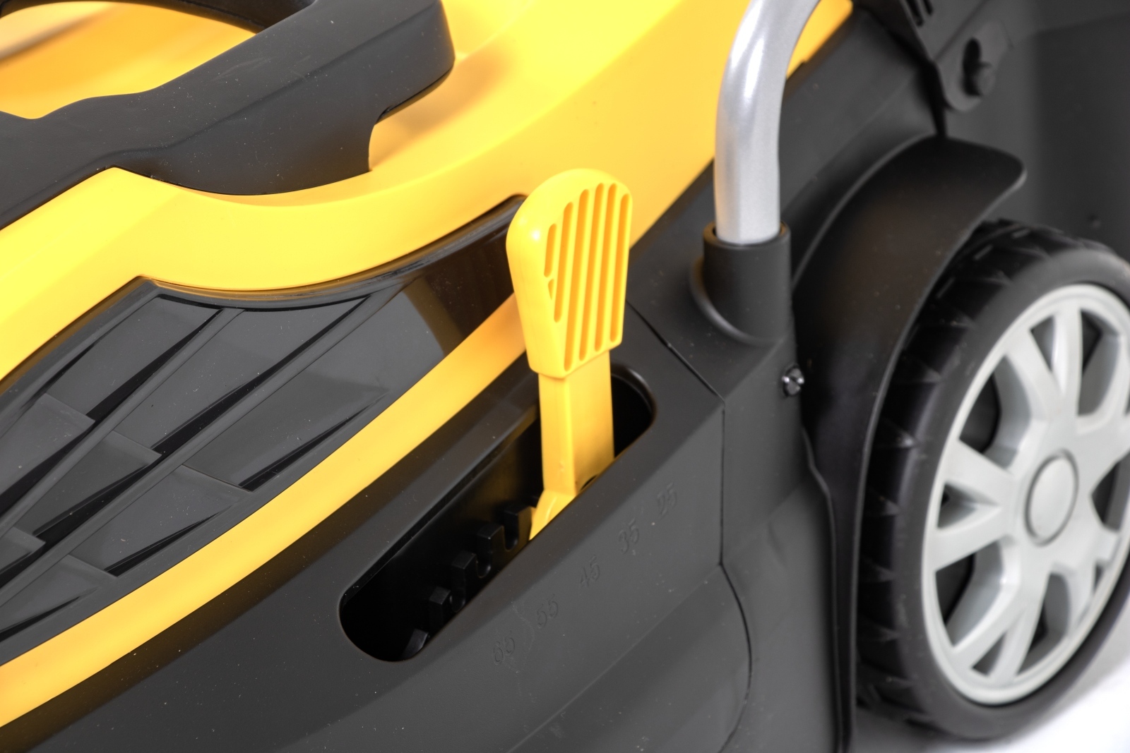 Kosiarka elektryczna Lider KC1400A to rozwiązanie bardzo praktyczne m.in. dlatego, że została ona wyposażona w cichy i ekologiczny silnik, którego moc sięga 1400 W. Do pracy z tym modelem potrzebujesz jedynie źródła prądu o napięciu 230 V. Pod względem samego koszenia na pewno na wyróżnienie zasługuje szerokość robocza urządzenia wynosząca 34 cm. Użytkownik ma też możliwość regulacji wysokości koszenia źdźbeł trawy w przedziale 25-65 mm. Ścinki zbierane będą do kosza o pojemności 35 litrów, posiadającego również wskaźnik napełnienia, który pokaże Ci, kiedy należy opróżnić zbiornik. Ergonomiczny uchwyt i solidne kółka są z kolei gwarancją zarówno tego, że kosiarka elektryczna Lider KC1400A posłuży Ci przez długi czas, jak też tego, iż będzie to opcja wygodna, którą doceni każdy domowy ogrodnik. Dla bezpieczeństwa w modelu tym zastosowano również termiczne zabezpieczenia przeciążeniowe chroniące sprzęt przed przegrzaniem.