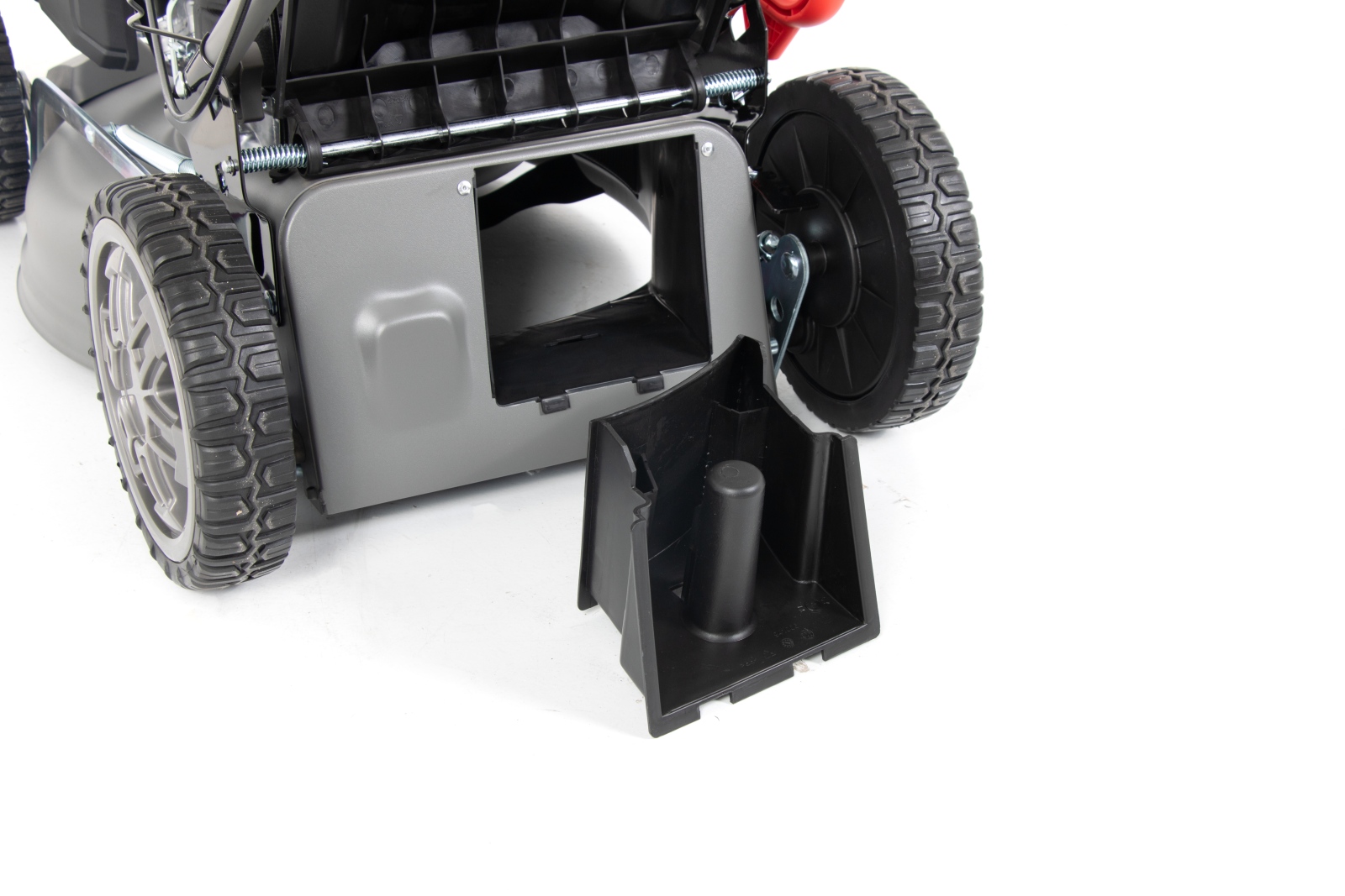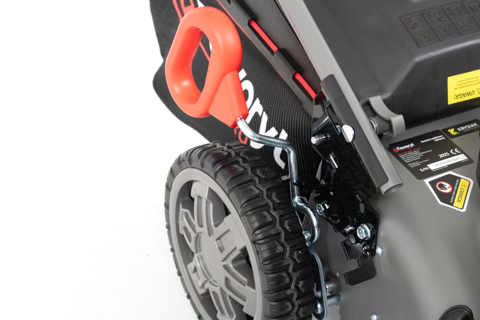 Regulowana wysokość uchwytu: Dwa poziomy regulacji wysokości uchwytu pozwalają na dopasowanie kosiarki do Twoich indywidualnych potrzeb, zapewniając maksymalny komfort podczas pracy.