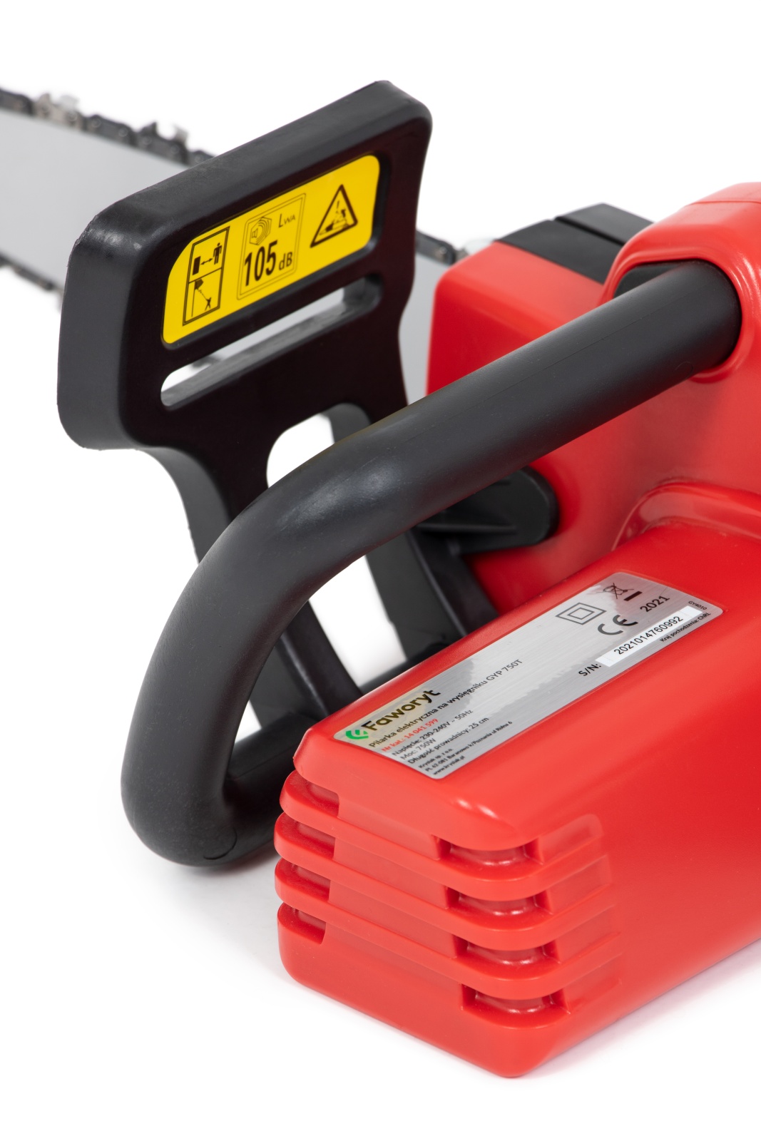 Pilarka elektryczna na wysięgniku Faworyt GYP750T została wyposażona w wydajny, ekologiczny silnik o mocy 750W. Wartą uwagi zaletą silnika pilarki elektrycznej z wysięgnikiem jest to, że nie emituje on groźnych dla zdrowia spalin oraz szkodliwego dla otoczenia hałasu. Komfort użytkowania urządzenia zapewnia pas nośny oraz ergonomiczny uchwyt. Wysięgnik umożliwia z kolei podcinanie gałęzi drzew bez użycia drabiny. Ponadto ułatwia to regulowany kąt cięcia. Pilarka elektryczna Faworyt GYP750T została wyposażona w solidny łańcuch 3/8”, posiadający system szybkiego napinania. Dodatkowo, zarówno łańcuch, jak i 25-centymetrowa prowadnica, pochodzą od znanego i cenionego producenta – amerykańskiej firmy Oregon. Dzięki temu, możesz mieć pewność, że wybrany model składa się z elementów najwyższej jakości i będzie działał sprawnie przez bardzo długi czas. można nią również pracować bez wysięgnika jak małą pilarką. Łatwą i szybką konserwację urządzenia gwarantuje system automatycznego smarowania łańcucha. Pilarka elektryczna z wysięgnikiem to doskonały wybór dla każdego, kto ceni narzędzia ogrodnicze wysokiej klasy i chce z przyjemnością i bez zbędnego wysiłku pielęgnować swój ogród.