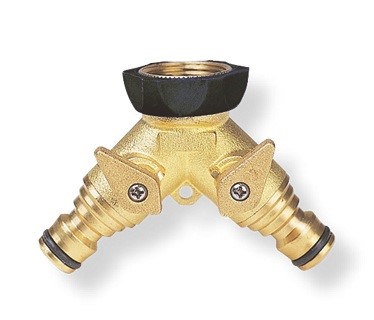 Niezależne wyjścia z wody oraz zawór do regulacji przepływu, otwarte / zamknięte. Służy do przyłączania dwóch linii węży wyposażonych w szybkozłączkę.