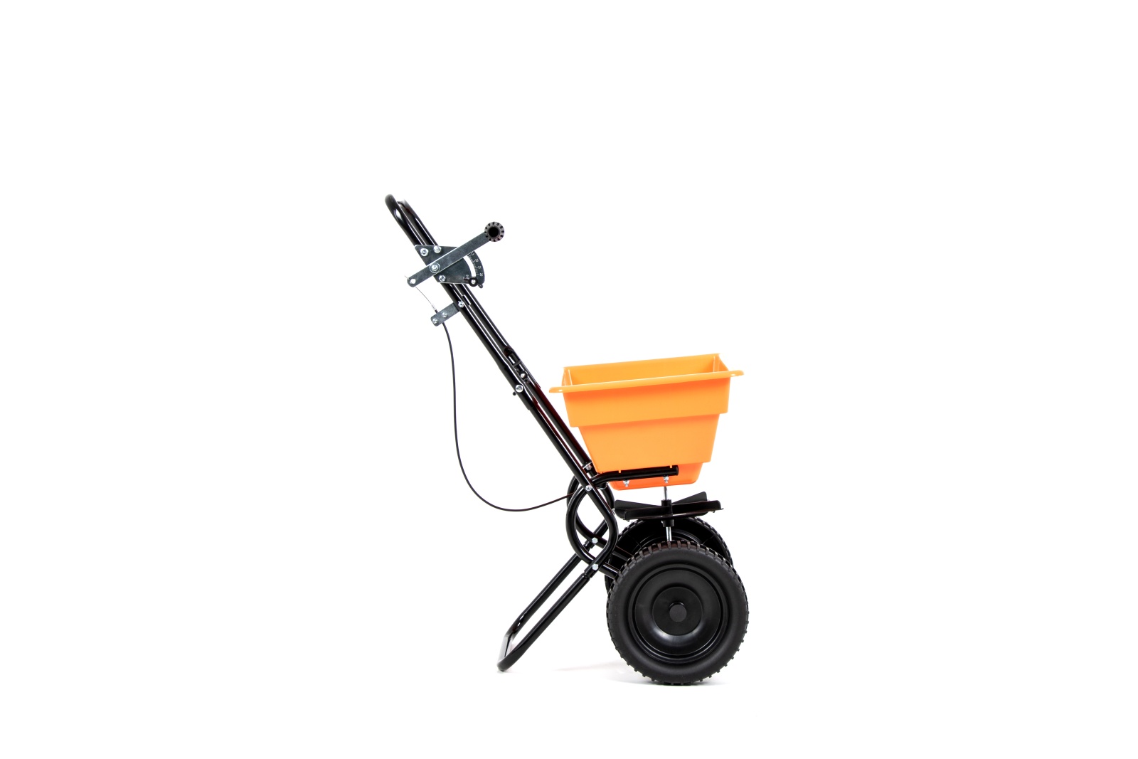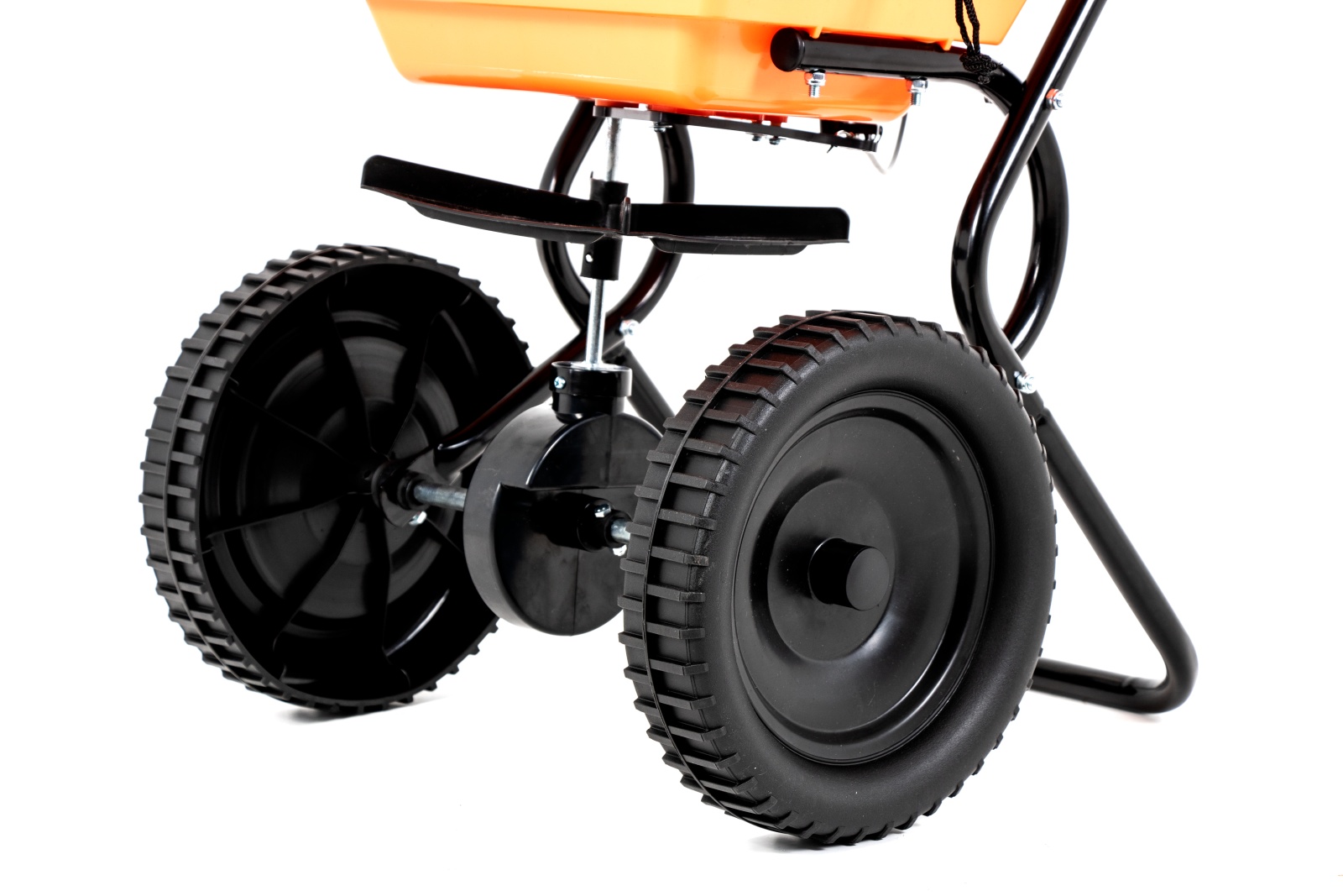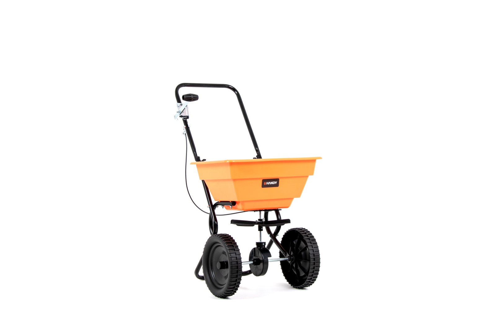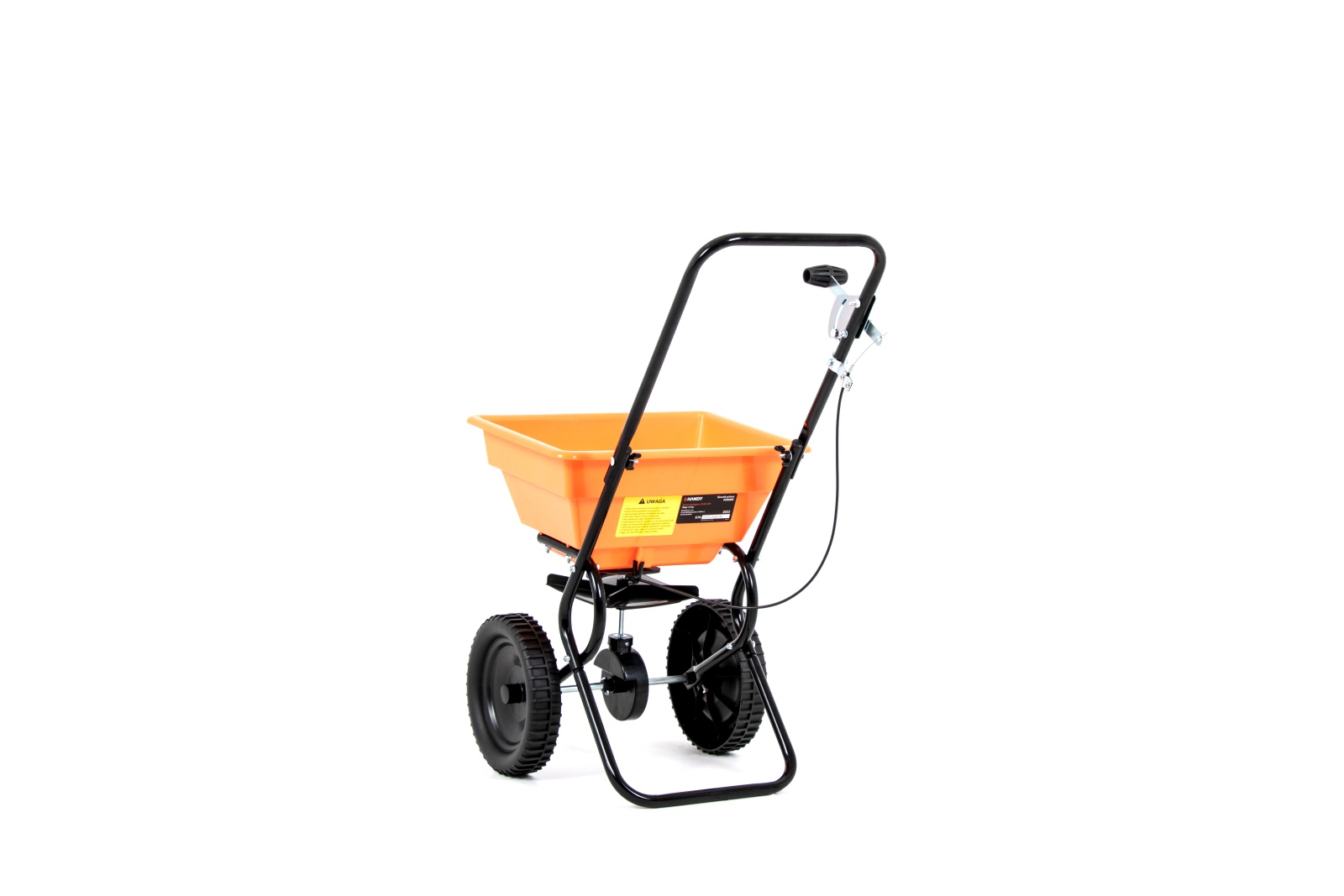 Jednym z głównych atutów siewnika Handy FCR1003 jest precyzyjna regulacja dozowania, która pozwala użytkownikowi dokładnie kontrolować ilość rozsiewanego materiału, co zapobiega jego marnotrawieniu. Duże koła oraz ergonomiczny uchwyt do wygodnego prowadzenia sprawiają, że manewrowanie siewnikiem po terenie jest proste i komfortowe, nawet na nierównych powierzchniach. Charakterystyczny, pomarańczowy kolor nawiązuje do marki Handy, co dodatkowo podkreśla jego solidne wykonanie i profesjonalny wygląd.